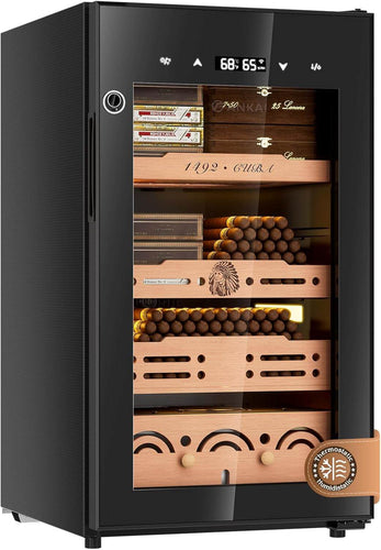 FANKAI 105L Electric Humidor Cabinet Holds Up to 900 Cigars, Variable Humidity and Temperature Controls, Digital Touch Screen, Fingerprint Safty Lock, 4 Removable Cedar Wood Drawer Shelves