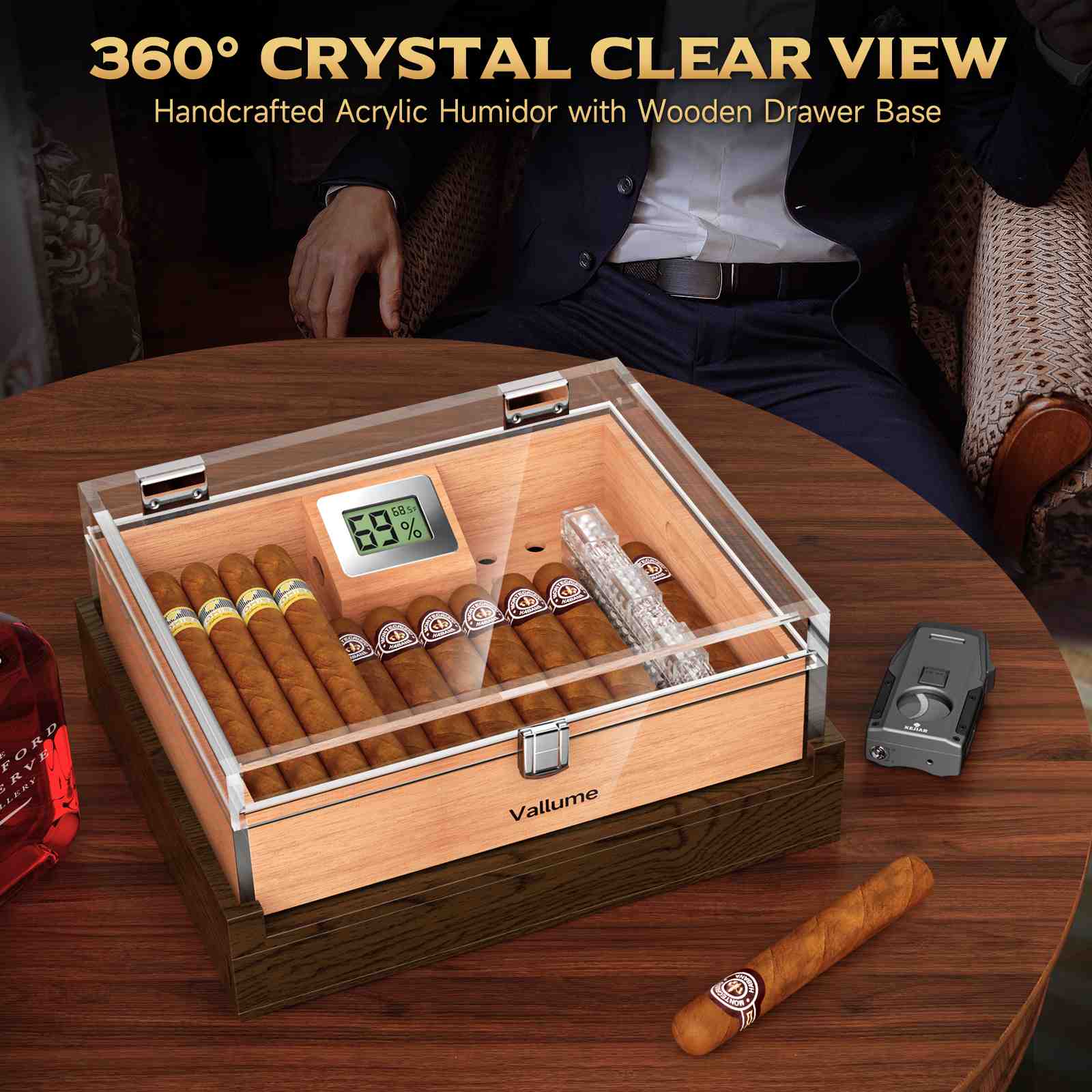More than a cigar box, this elegant acrylic humidor doubles as a statement piece for your office, cigar bar, or home. Perfectly designed for cigar enthusiasts, itâs an exceptional gift for Fatherâs Day, Christmas, birthdays, or anniversariesâa blend of craftsmanship, sophistication, and passion.