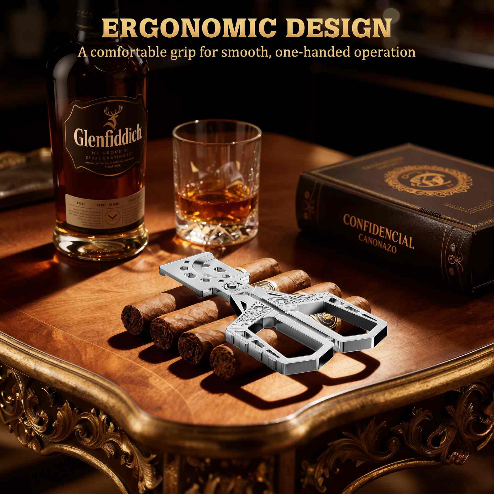 🔥 Ultra-Sharp Stainless Steel Blades: Built from high-grade stainless steel, the blades maintain long-lasting sharpness and durability, allowing effortless cutting across a wide range of up to 75 ring gauge cigars without damaging the wrapper